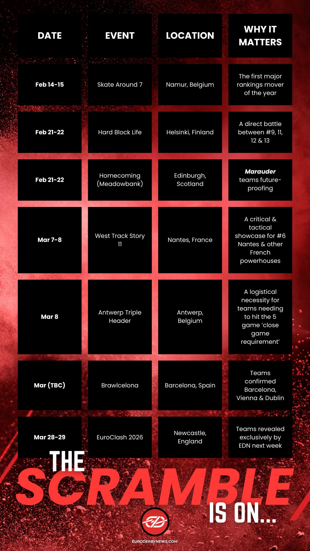 In the modern WFTDA era, the most brutal hits don’t always happen on the track, they can happen on a spreadsheet. As the April 1st ranking snapshot looms like a hydraulic blast door closing, the European Top 12 is no longer a safe haven. With the 2026 WFTDA World Championships set for October in Malmö, Sweden, the European Roller Derby landscape is escalating from strategic skirmishes to pitched battles.